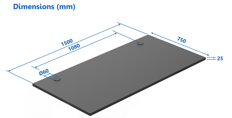Up Up Table top L Black, 1500x750x25mm (Laminated particle board) (SPEC)