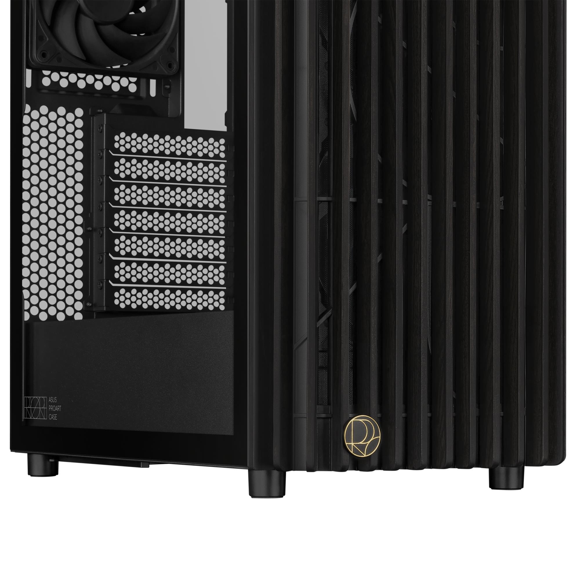 The ProArt PA401 Wood Edition showcases a wooden front panel that creates a distinctive, elegant style while promoting sustainability. The wood used is certified by the Forest Stewardship Council® (FSC®), and is finished using a six-stage process. The case also boasts optimal built-in cooling, with two 160mm front fans and one 120mm rear fan, along with an integrated fan hub, enabling optimal airflow.