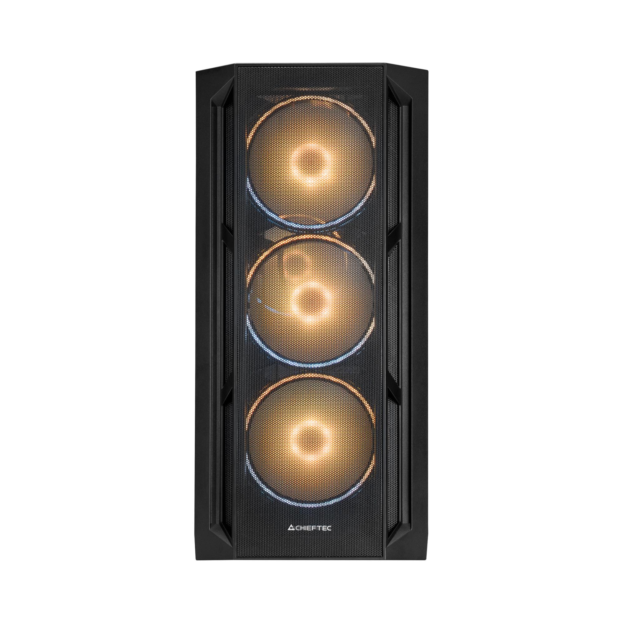 The CHIEFTEC APEX Lumo presents an E-ATX chassis with a large mesh front panel and tempered glass on the left side, including 4 pre-installed 140mm ARGB PWM fans that provide impressive style and powerful cooling. The use of 140mm ARGB fans, pre-installed with a control hub featur-ing A-RGB M/B Sync as well as PWM fan speed control, offer an ideal combination of style, airflow and noise.The case itself is generous with space, offering support for GPUs up to 400mm in length, CPU coolers up to 175mm in height, and radiators support up to 360mm at the top and up to 420mm in the front. The CHIEFTEC APEX Lumo is ready to bring both aesthetics and better cooling to modern gaming systems.