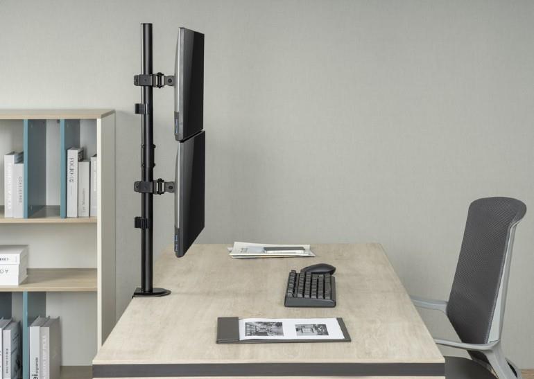 - Each monitor mount is height adjustable and allows swivel, tilt and rotation