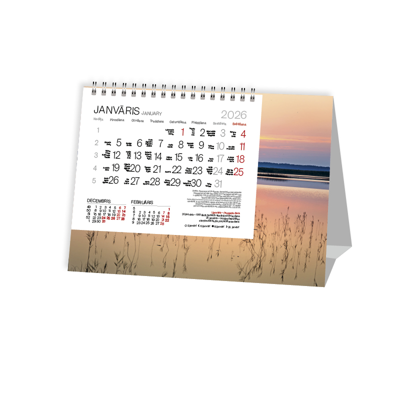 Galda kalendārs 2026 gadam PYRAMID LV EŽERAS, ar tonētām lapām
