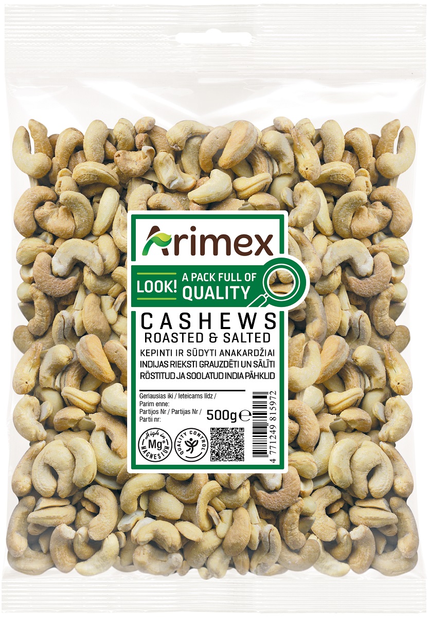 Indijas rieksti grauzdēti, sālīti ARIMEX, 500g