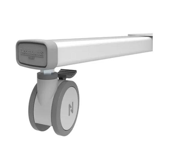 The Neomounts Select FL50S-825WH1 is a mobile floor stand for flat screens up to 75" with a maximum weight capacity of 70 kg. The floor stand is manually adjustable in height (114,5-153,5 cm), as well as the bracket head. A lockable, ventilated hardware compartment with cable opening is included and optional for installation (both portrait and landscape).