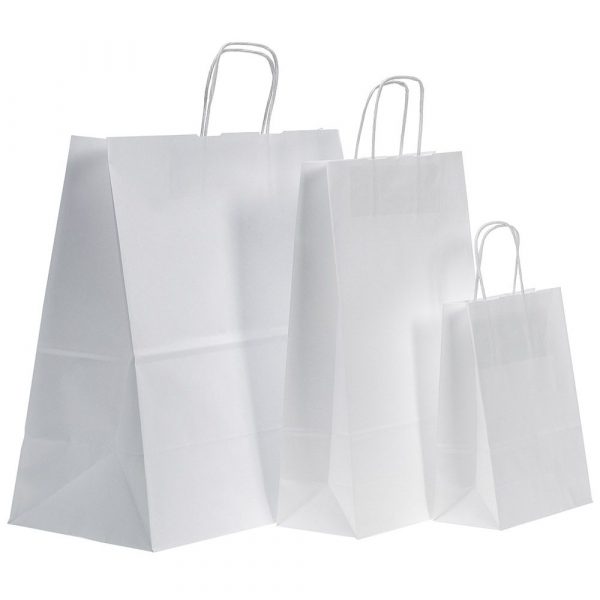 Maisiņš ar vītiem papīra rokturiem, papīrs, 305 x 170 x 340 mm, balta krāsa