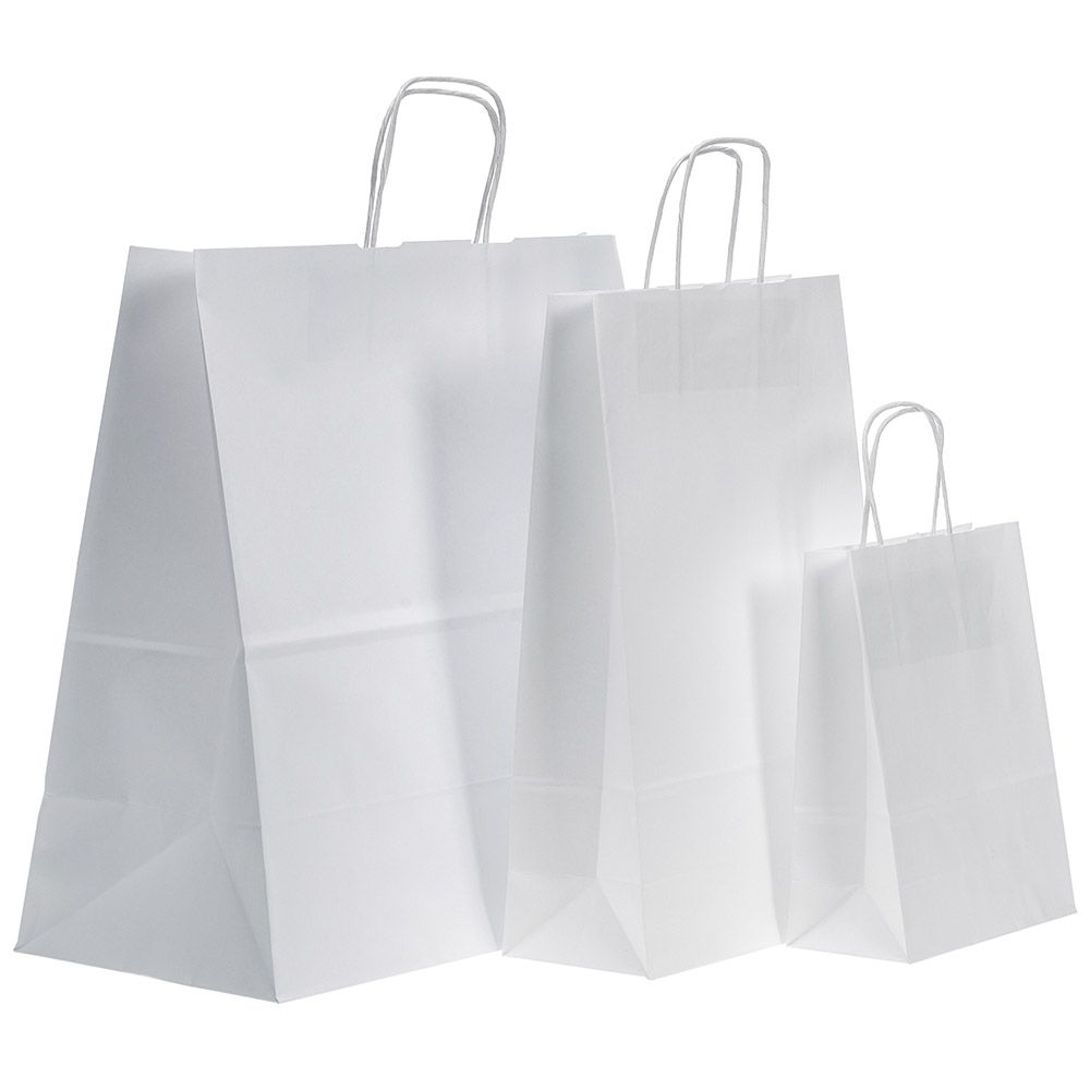 Maisiņš ar vītiem papīra rokturiem, papīrs, 340 x 200 x 330 mm, balta krāsa