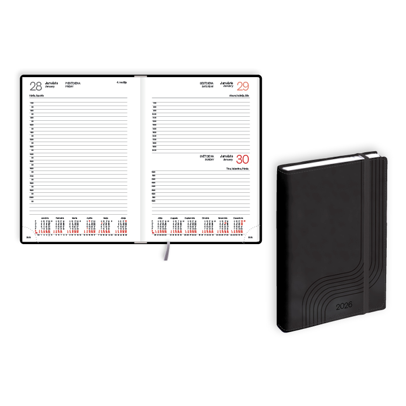 • mīksts mākslīgās ādas vāks, elastīgi vāki ar apaļiem stūriem, ornaments reljefā, gumijas aizdare