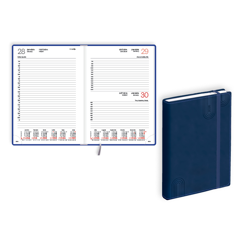 • mīksts mākslīgās ādas vāks, elastīgi vāki ar apaļiem stūriem, ornaments reljefā, gumijas aizdare