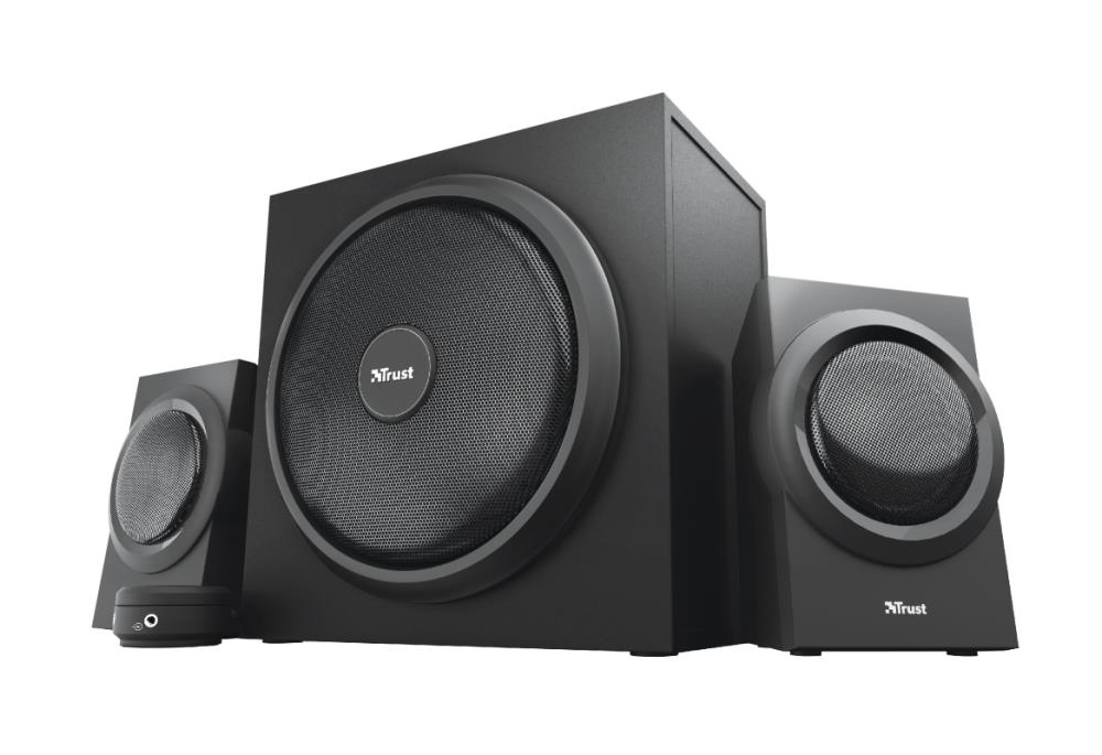 – Powerful 2.1 speaker set with 120W peak power (60W RMS)