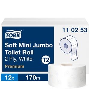Toilet paper Tork PREMIUM MINI JUMBO T2 110253, 2 sl., 9.7 cm x 170 m, white, 12 psc.